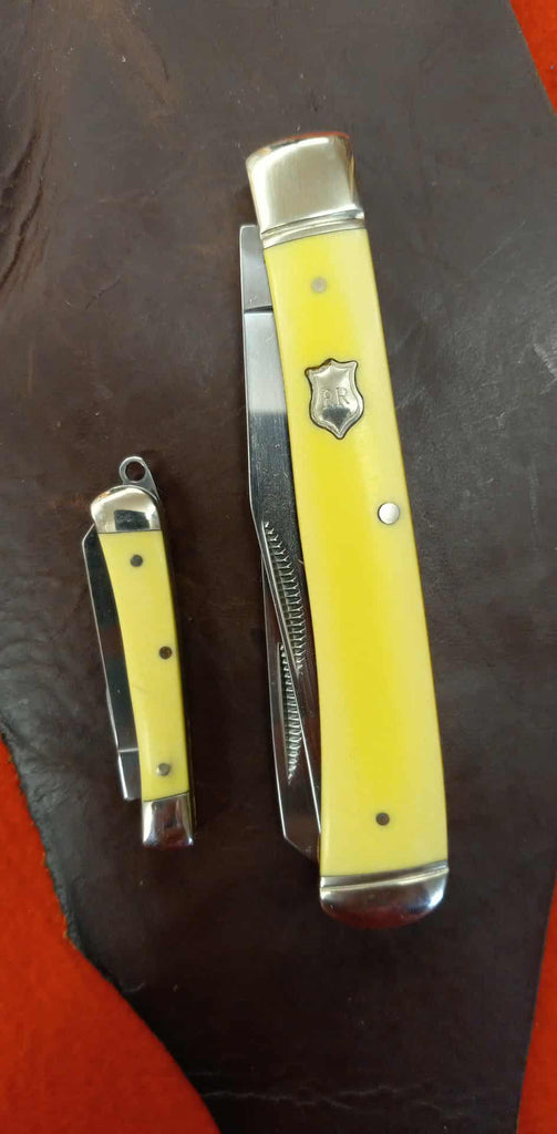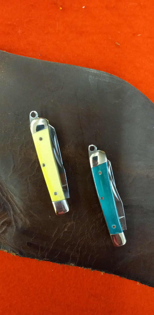 TINY trapper! Just 2" long, but features a sharp little blade. Attach a chain on the loop to add to your key chain.